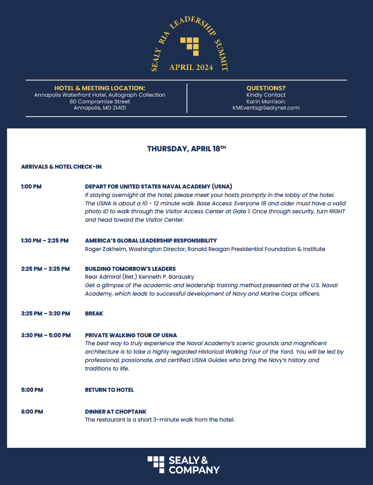 AGENDA CLICK HERE TO DOWNLOAD THE FULL AGENDA Oct 21 Sealy RIA Summit October 2020 Wednesday, October 21, 2020 10:00 AM 3:30 PM Google Calendar ICS Click here to download a PDF of the agenda. View Event →